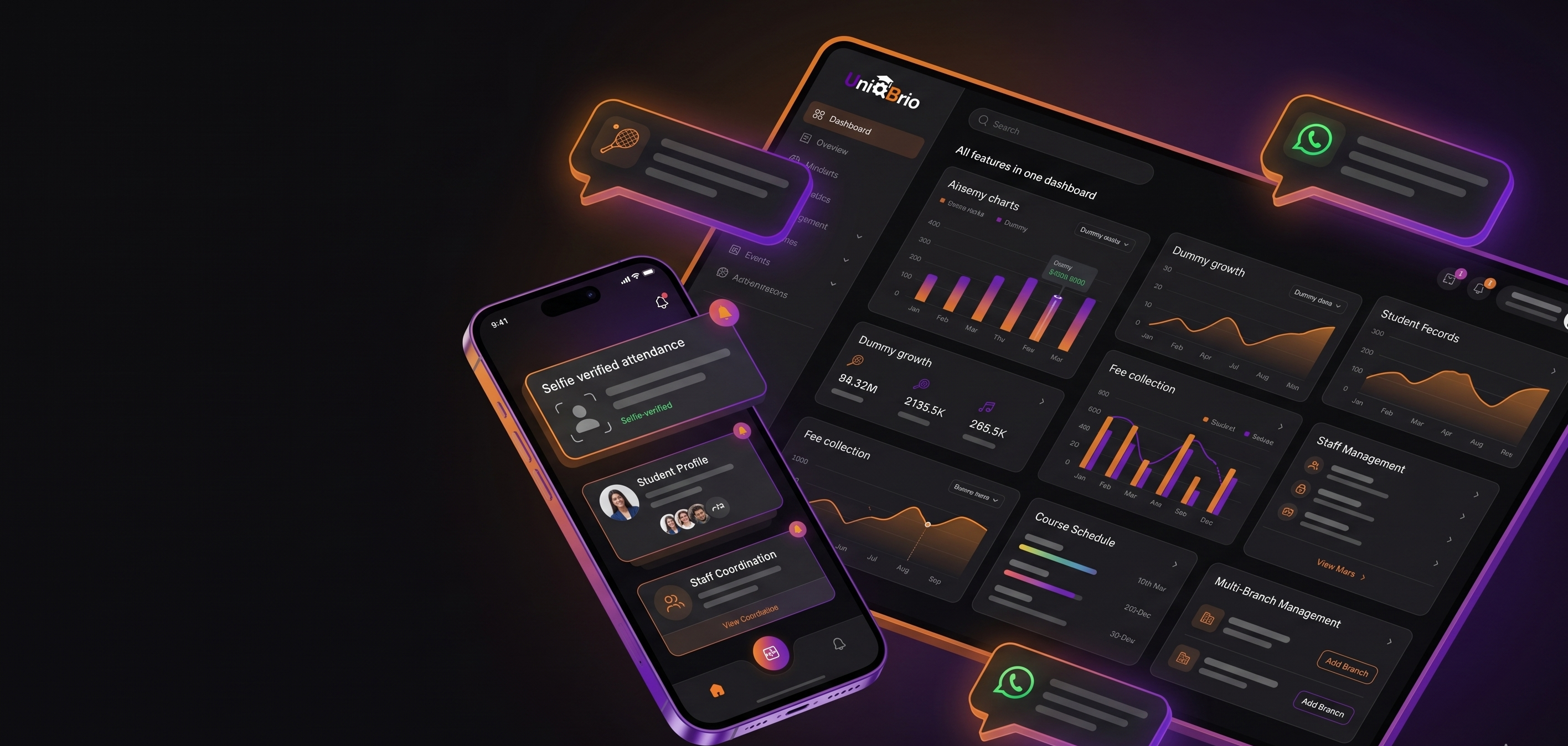 UniqBrio automates fee collection, parent communication and attendance so you can focus on what you started your academy for โ Teaching.